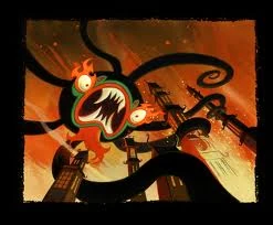 Aku causando el caos durante su segunda liberación.