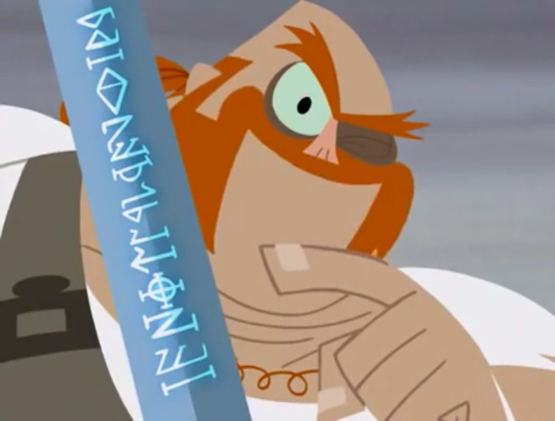 Those properties made it one of the few weapons that were capable of matching Jack's Sword. However, when the Scotsman, as an old man, actually faced off against Aku, Aku used his Eye Beams, leaving the Scotsman vaporized and half of his sword broken. Despite being partially destroyed, the runes inscribed on the blade allowed the Scotsman to return as a spirit, and the broken blade itself was carried into battle by his daughter, Flora (Episode XCVI). Flora then used it in the final battle against Aku (Episode CI).